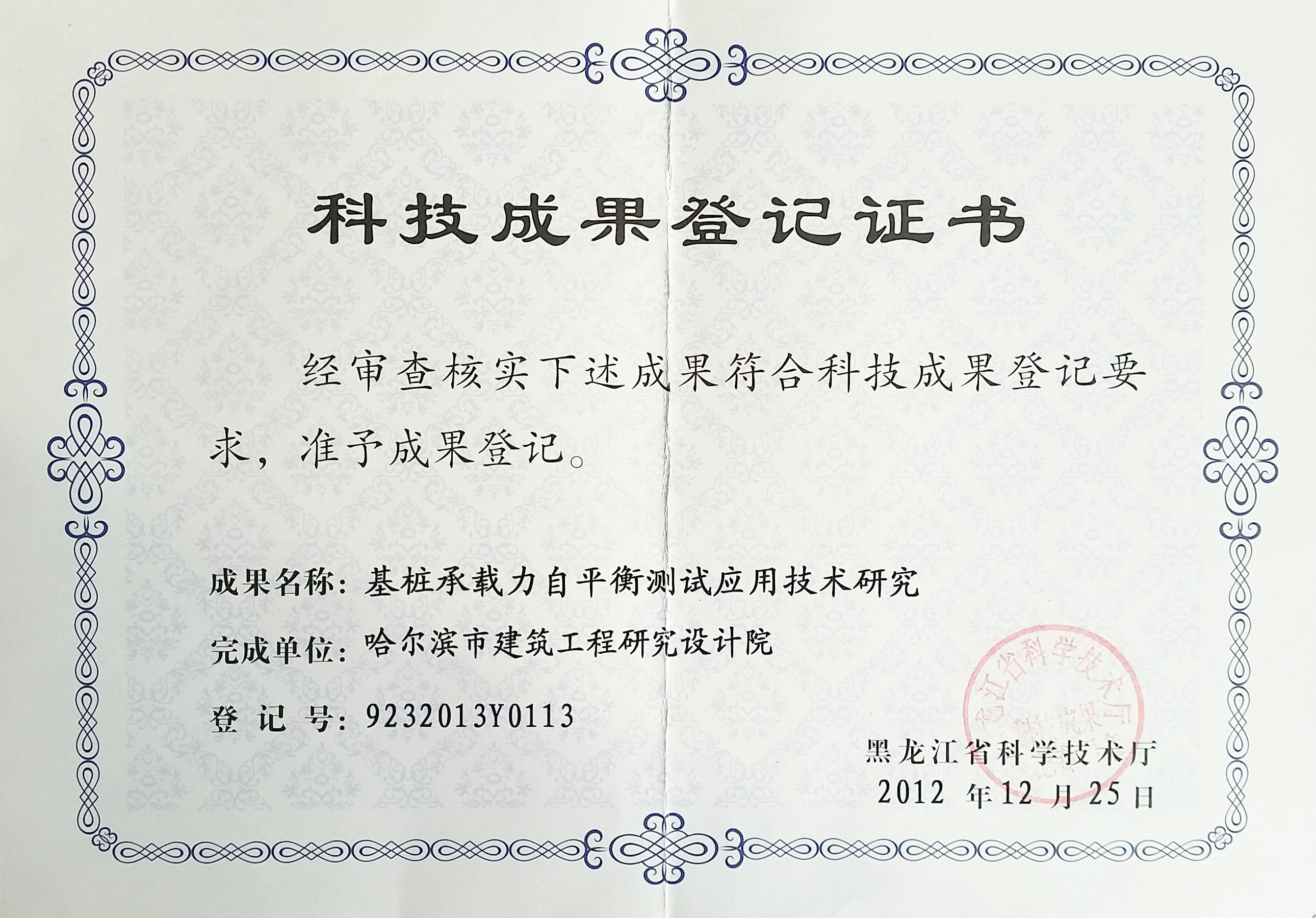 基樁承載力成果證書